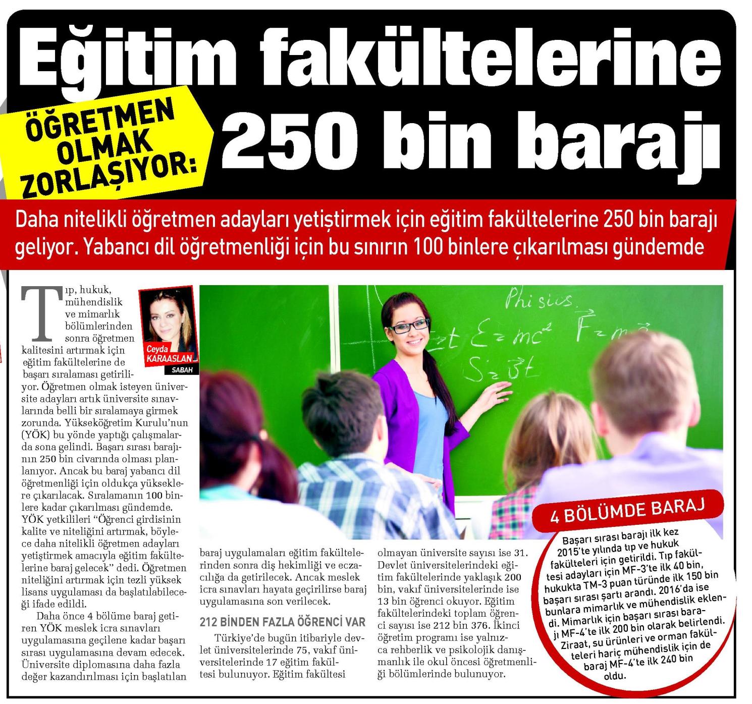 EĞİTİM FAKÜLTELERİNE 250 BİN BARAJI