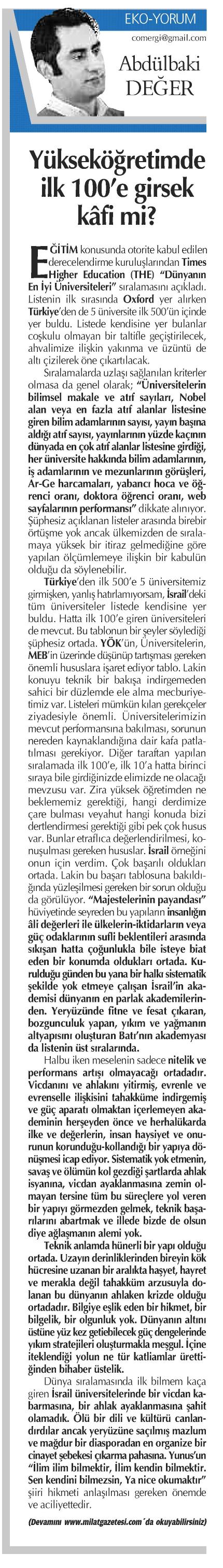 YÜKSEKÖĞRETİMDE İLK 100'E GİRSEK KAFİ Mİ?