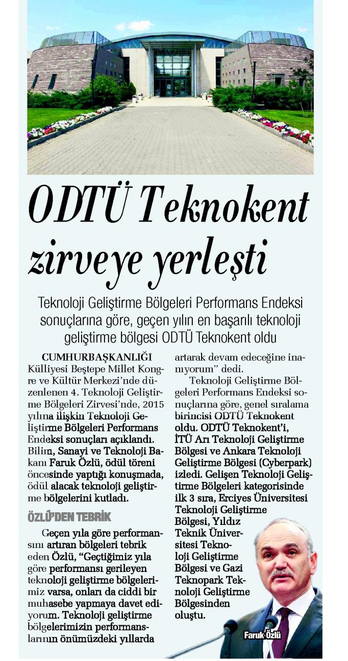 ODTÜ TEKNOKENT ZİRVEYE YERLEŞTİ