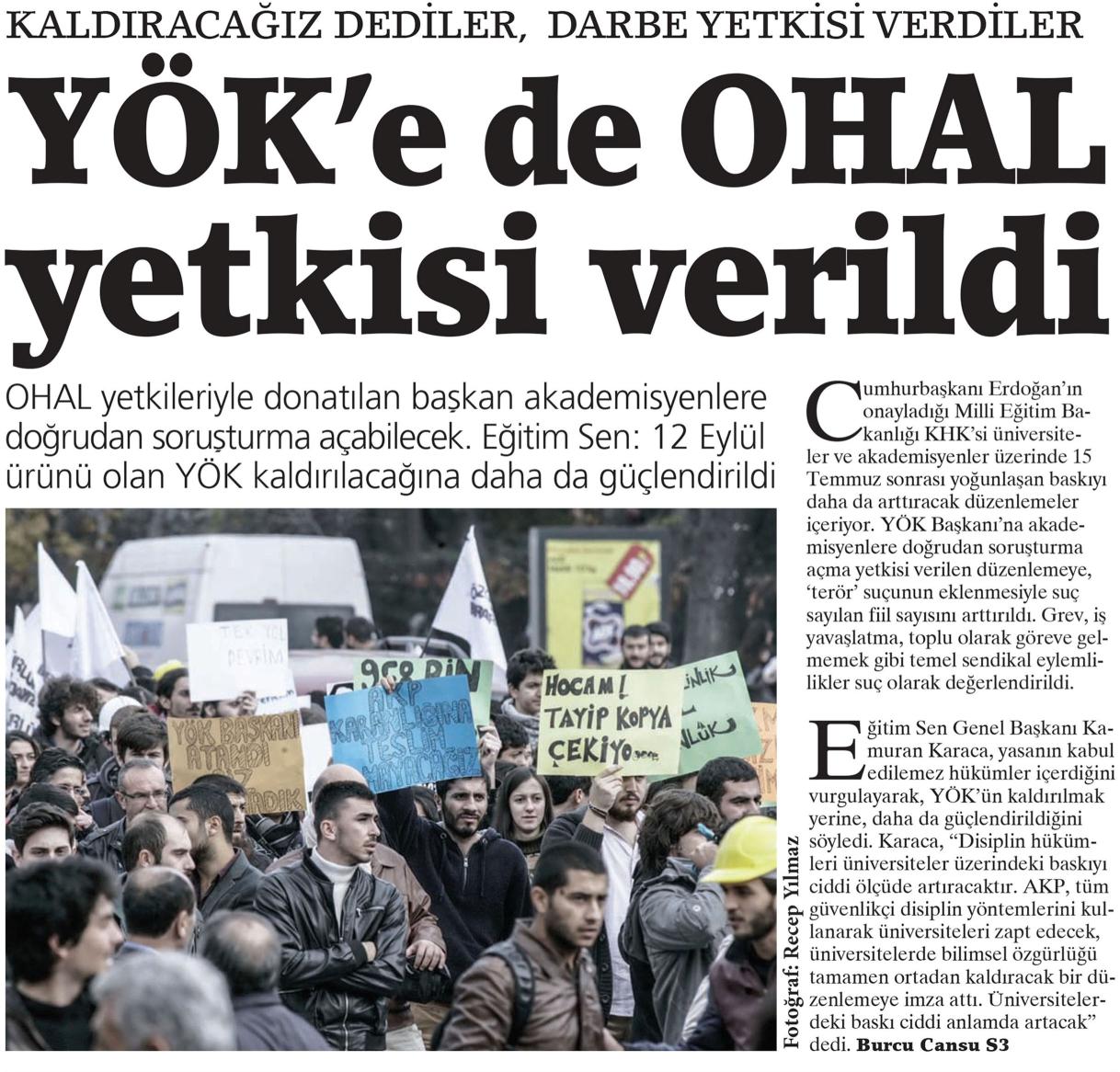 YÖK'E DE OHAL YETKİSİ VERİLDİ
