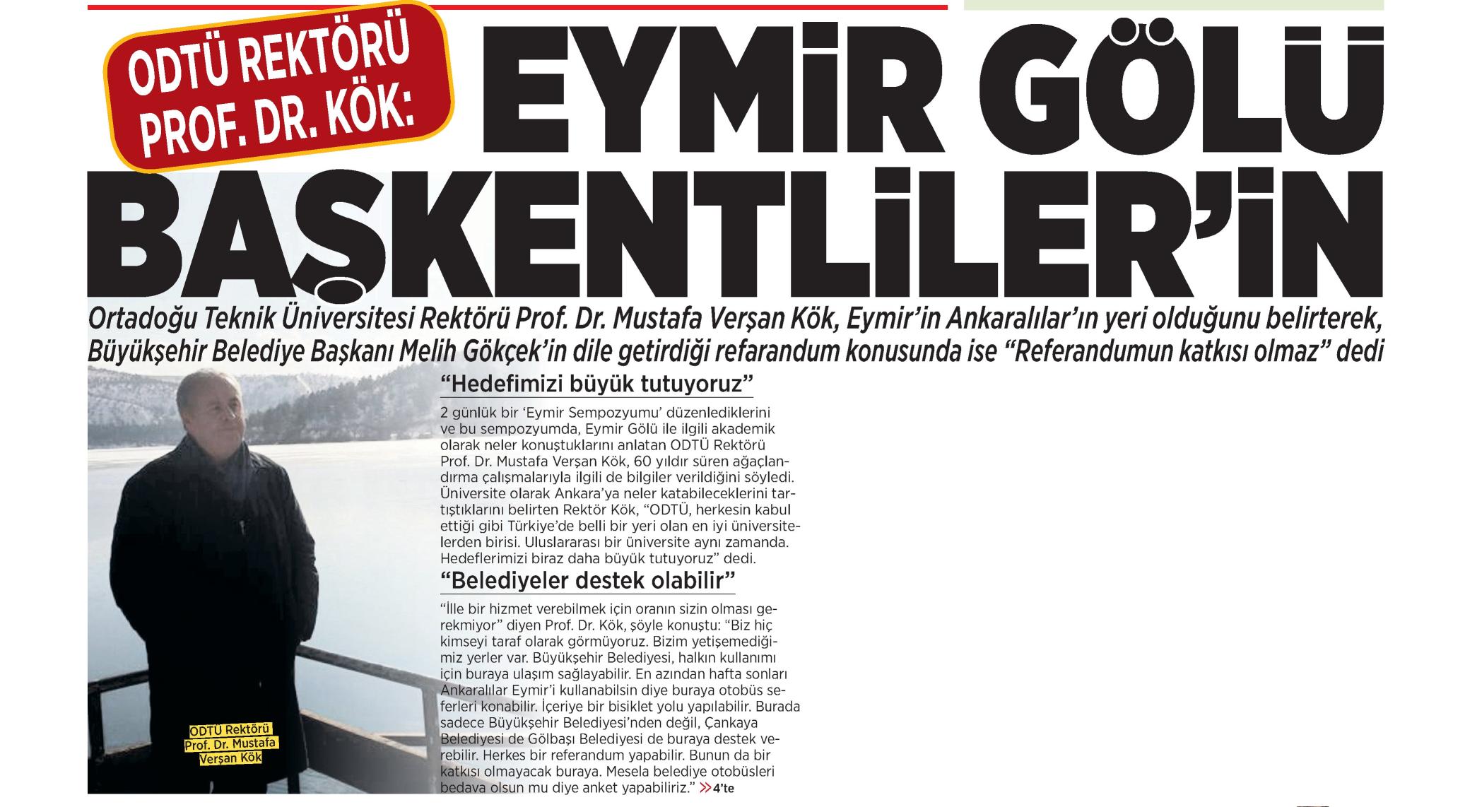 ODTÜ REKTÖRÜ PROF. DR. KÖK: EYMİR GÖLÜ BAŞKENTLİLER'İN