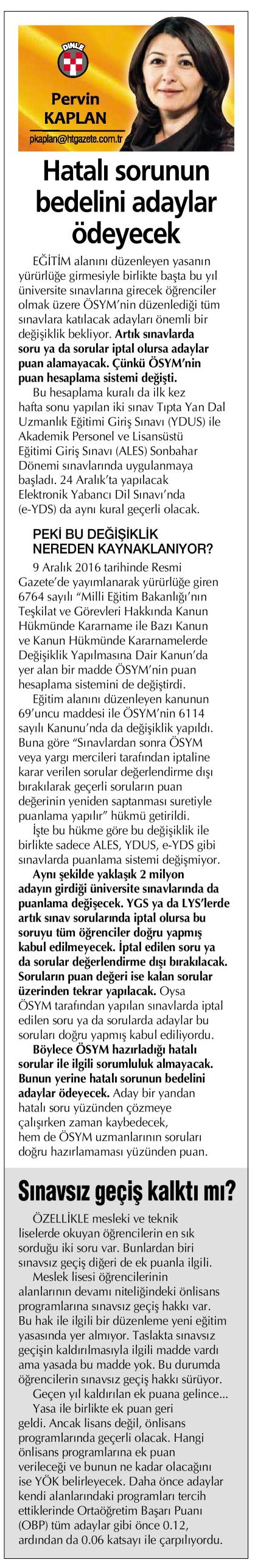 HATALI SORUNUN BEDELİNİ ADAYLAR ÖDEYECEK