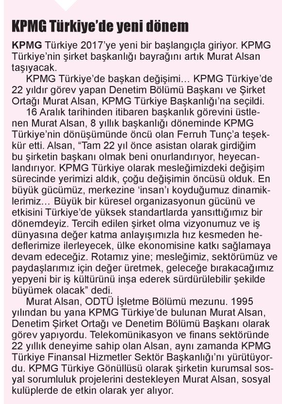 KPMG TÜRKİYE'DE YENİ DÖNEM