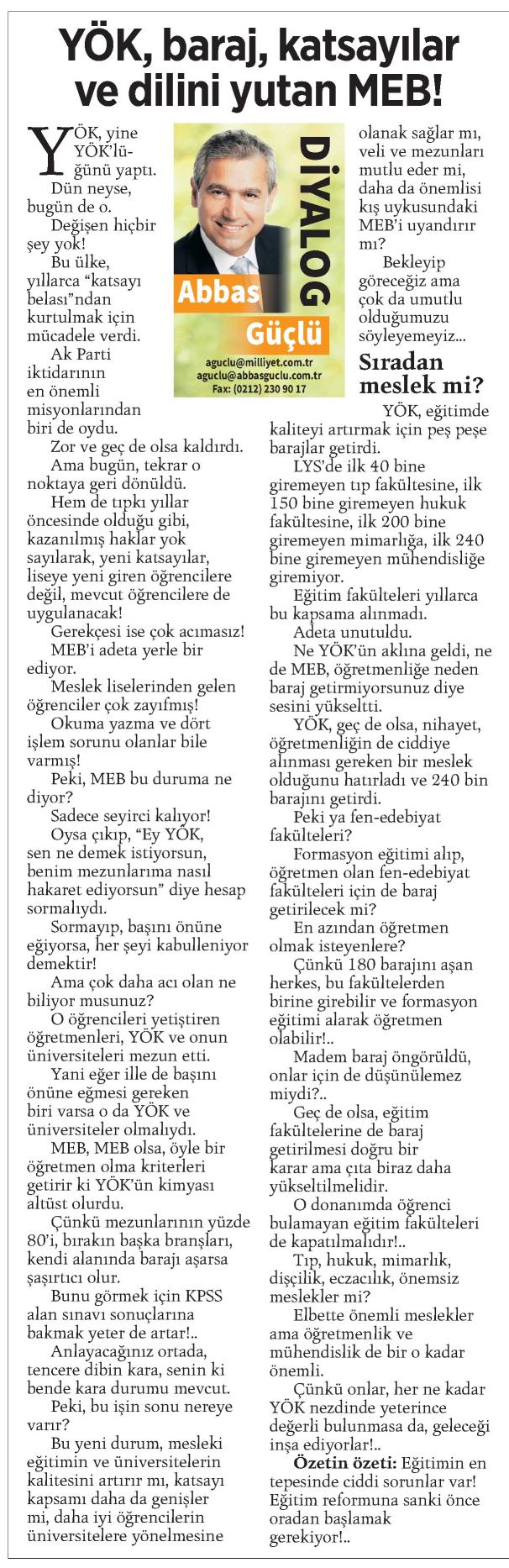 YÖK, BARAJ, KATSAYILAR VE DİLİNİ YUTAN MEB!