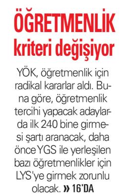 ÖĞRETMENLİK KRİTERİ DEĞİŞİYOR
