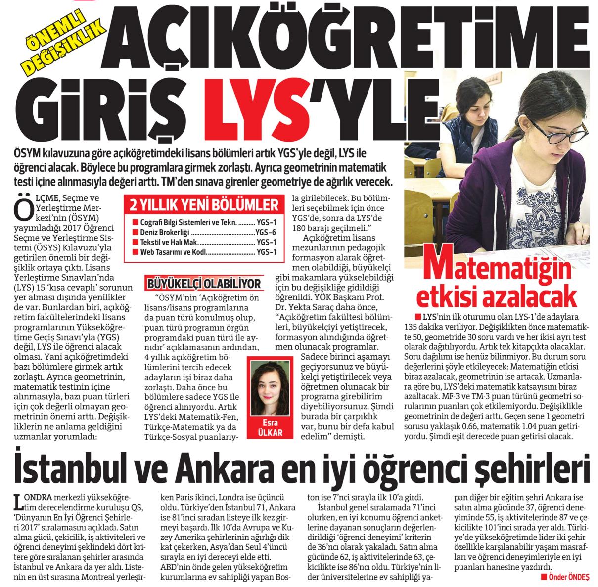 AÇIKÖĞRETİME GİRİŞ LYS'YLE