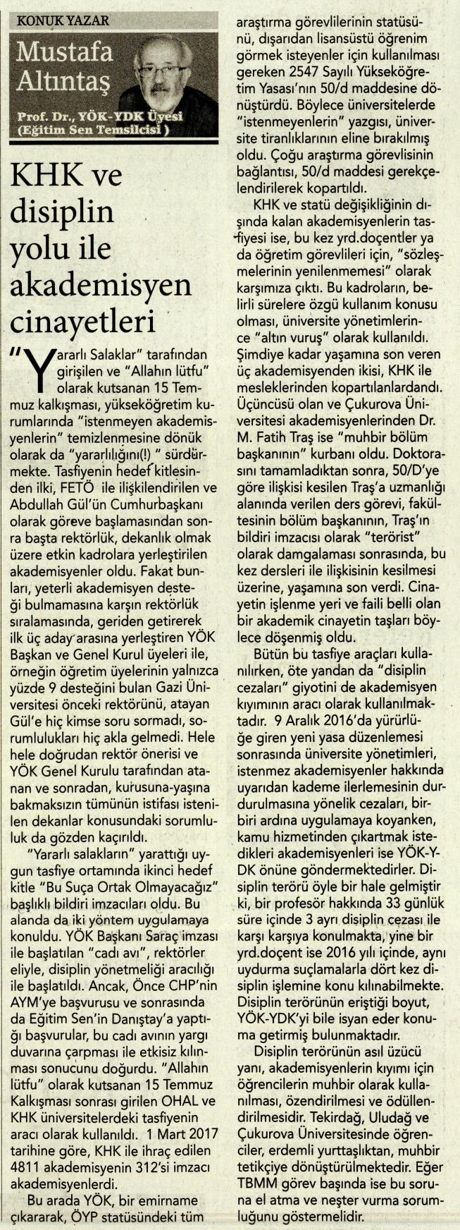 KHK VE DİSİPLİN YOLU İLE AKADEMSİYEN CİNAYETLERİ