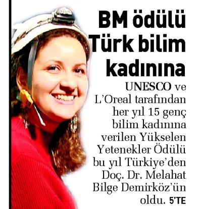 BM ÖDÜLÜ TÜRK BİLİM KADININA