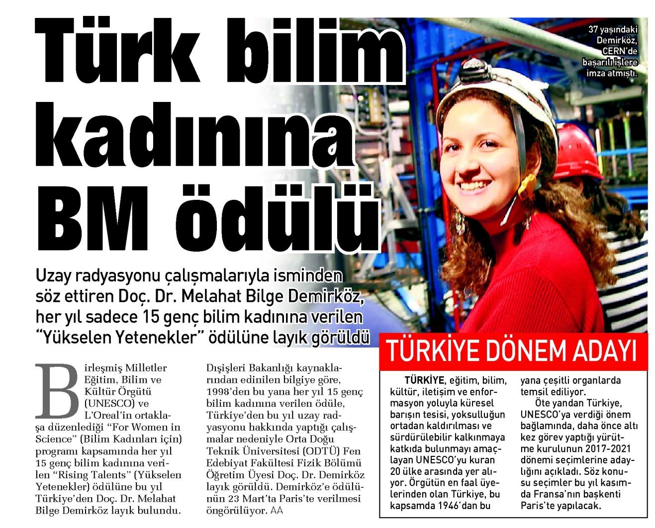 BM ÖDÜLÜ TÜRK BİLİM KADININA [Devam - 1]