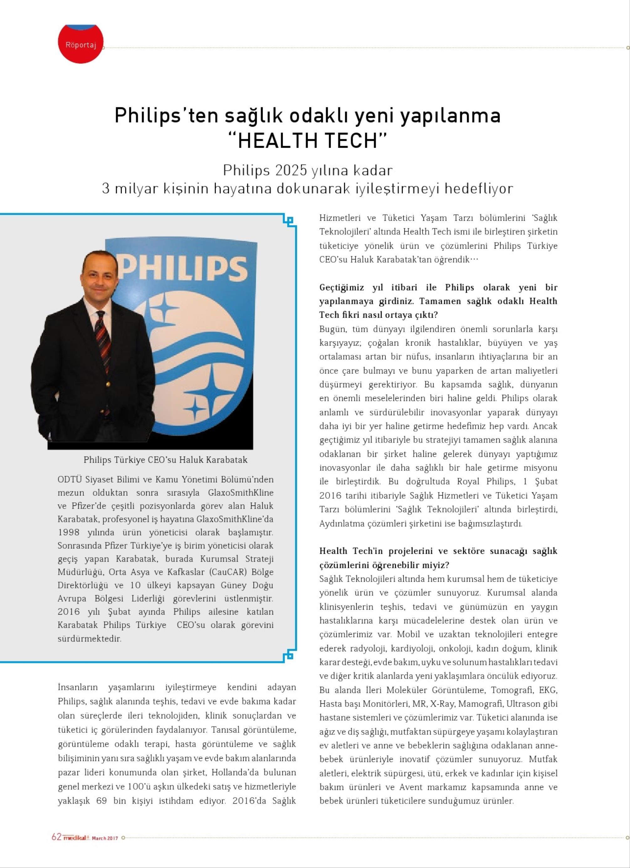 PHILIPS'TEN SAĞLIK ODAKLI YENİ YAPILANMA "HEALTH TECH"