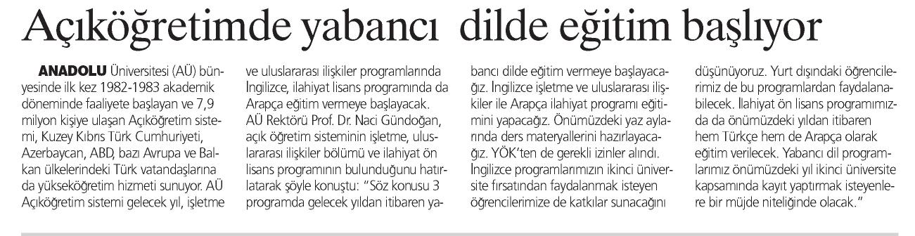 AÇIKÖĞRETİMDE YABANCI DİLDE EĞİTİM BAŞLIYOR