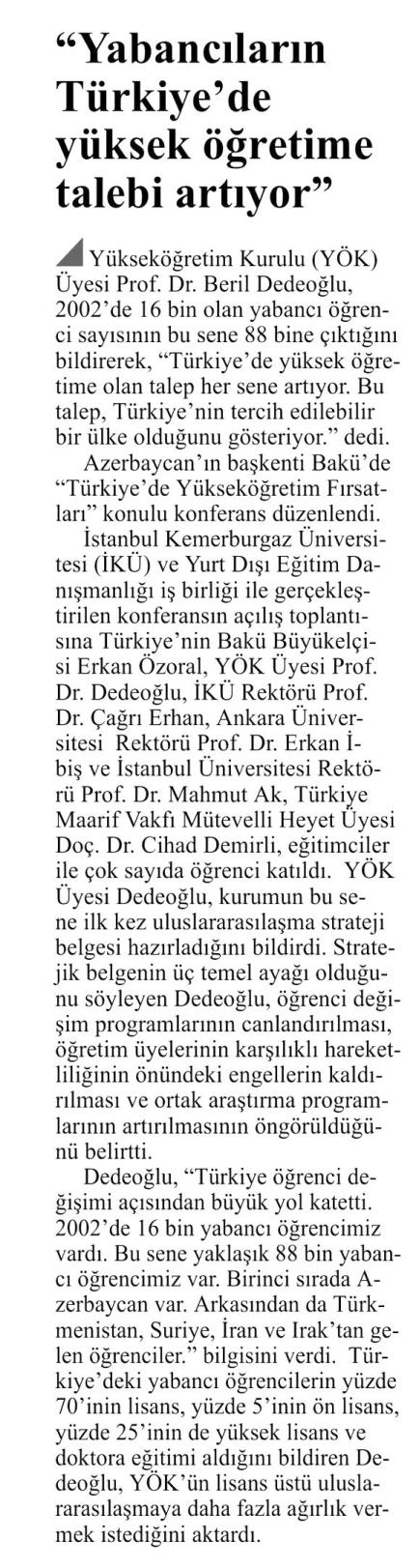 "YABANCILARIN TÜRKİYE'DE YÜKSEK ÖĞRETİME TALEBİ ARTIYOR"