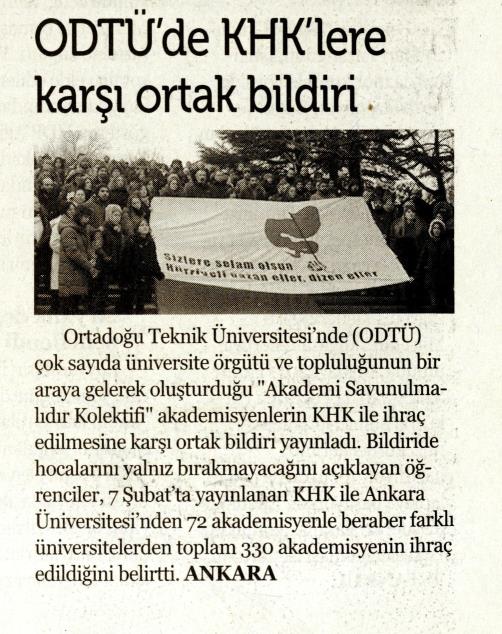 ODTÜ'DE KHK'LERE KARŞI ORTAK BİLDİRİ