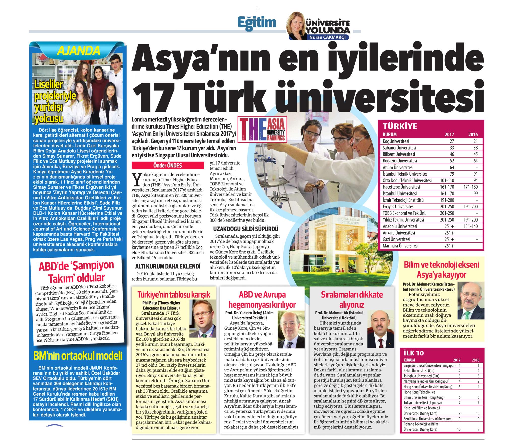 ASYA'NIN EN İYİLERİNDE 17 TÜRK ÜNİVERSİTESİ