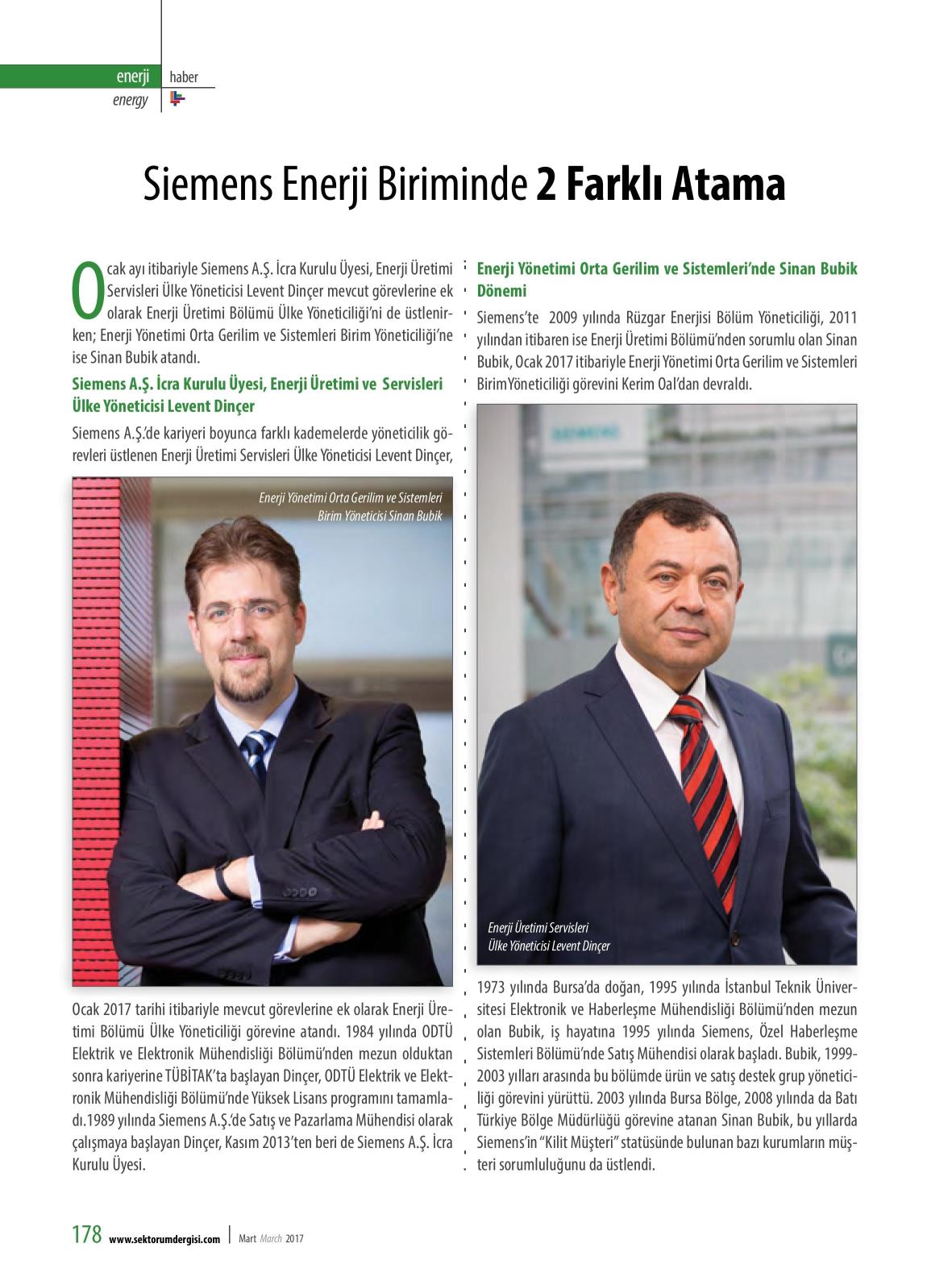 SIEMENS ENERJİ BİRİMİNDE 2 FARKLI ATAMA