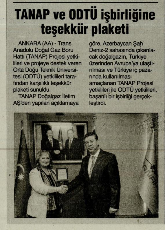 TANAP VE ODTÜ İŞBİRLİĞİNE TEŞEKKÜR PLAKETİ