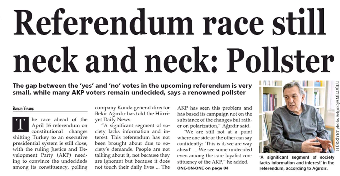REFERENDUM RACE STILL NECK AND NECK: POLLSTER