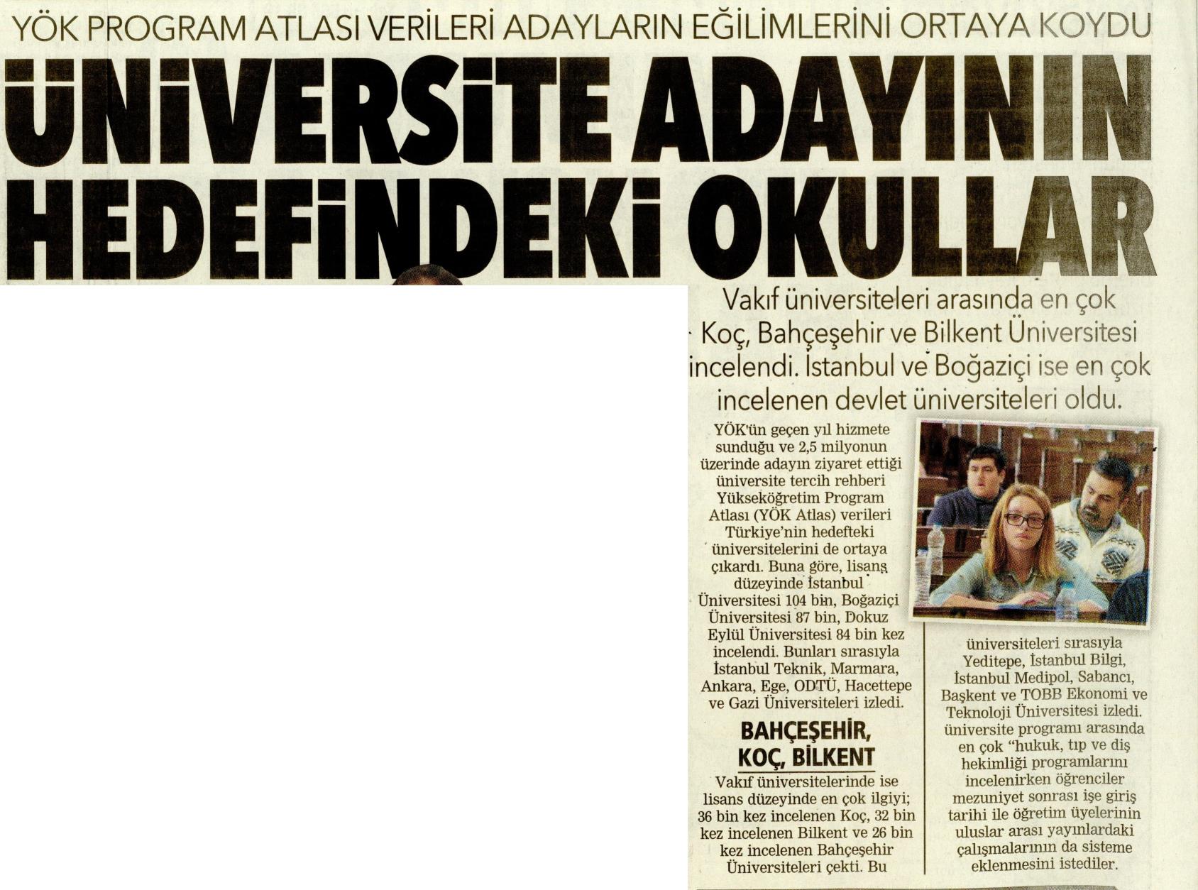ÜNİVERSİTE ADAYININ HEDEFİNDEKİ OKULLAR