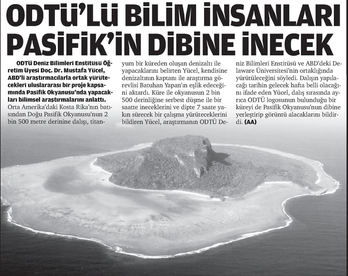 ODTÜ'LÜ BİLİM İNSANLARI PASİFİK'İN DİBİNE İNECEK
