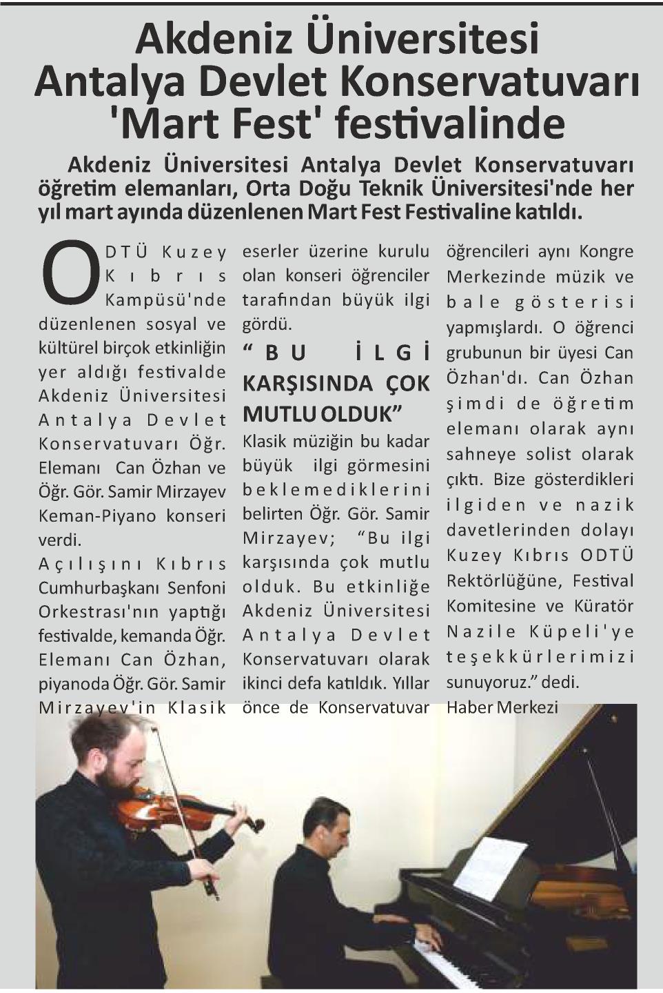 AKDENİZ ÜNİVERSİTESİ ANTALYA DEVLET KONSERVATUVARI 'MART FEST' FESTİVALİNDE