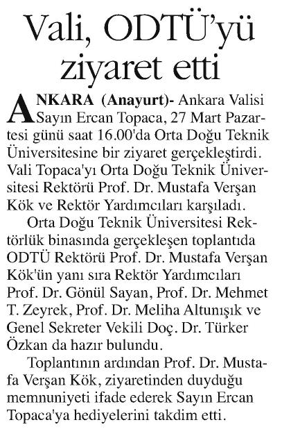 VALİ, ODTÜ'YÜ ZİYARET ETTİ