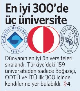 EN İYİ 300'DE ÜÇ ÜNİVERSİTE