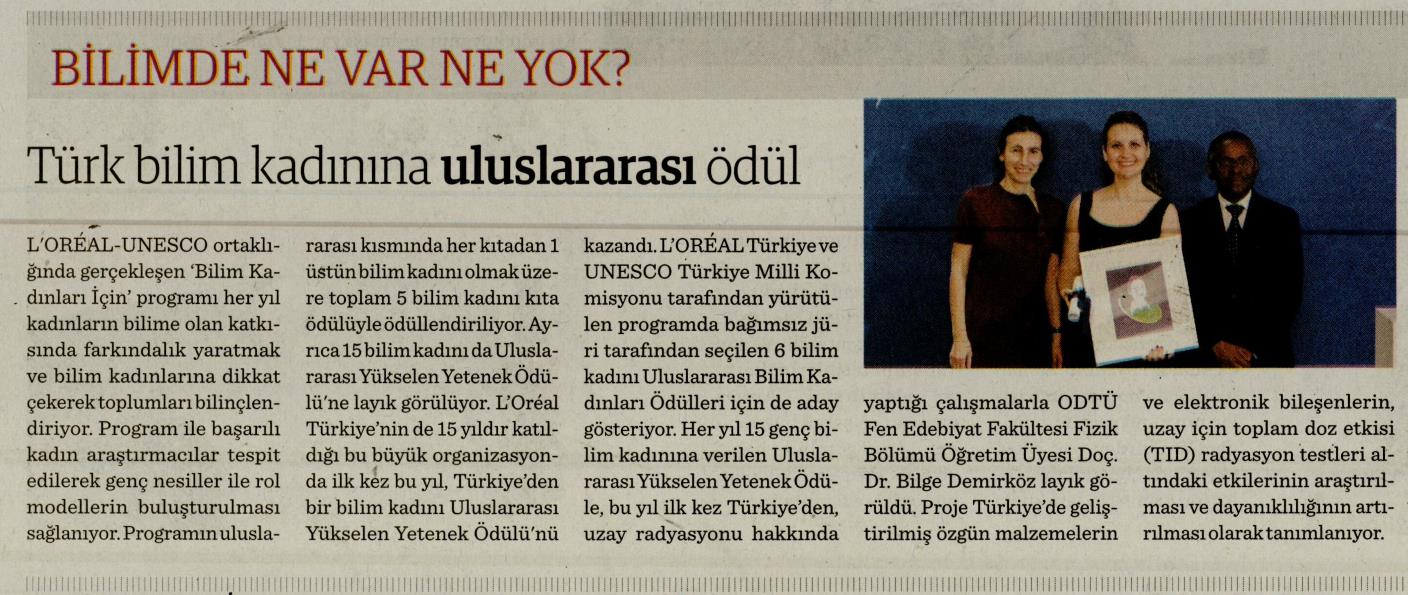 TÜRK BİLİM KADININA ULUSLARARASI ÖDÜL