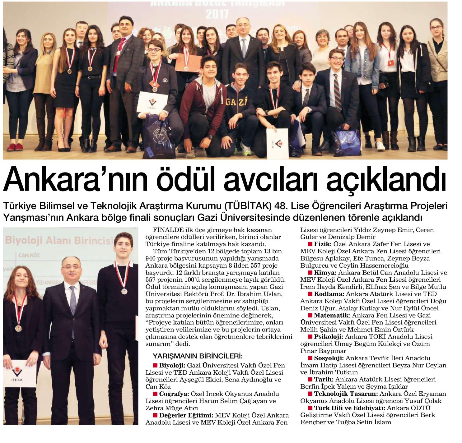 ANKARA'NIN ÖDÜL AVCILARI AÇIKLANDI