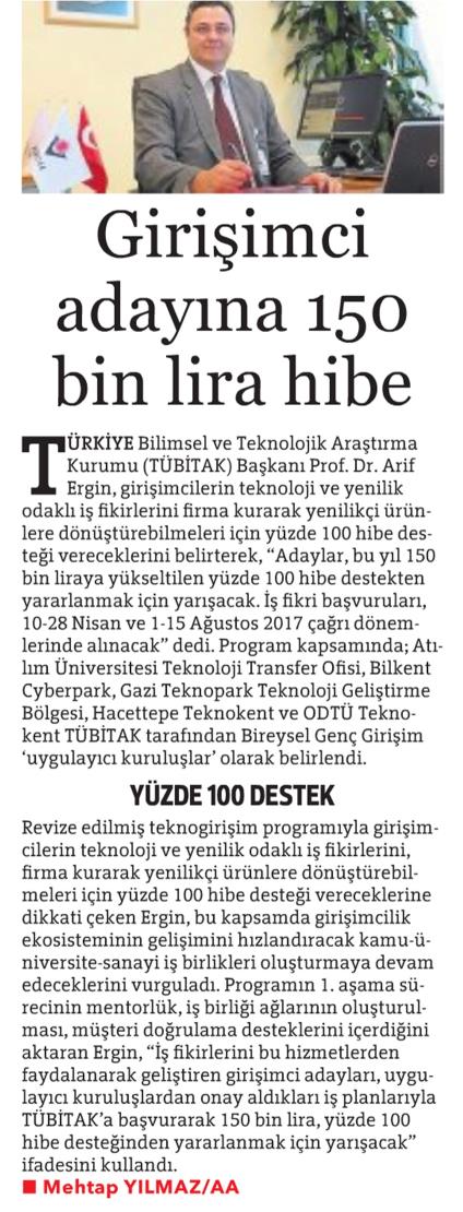 GİRİŞİMCİ ADAYINA 150 BİN LİRA HİBE