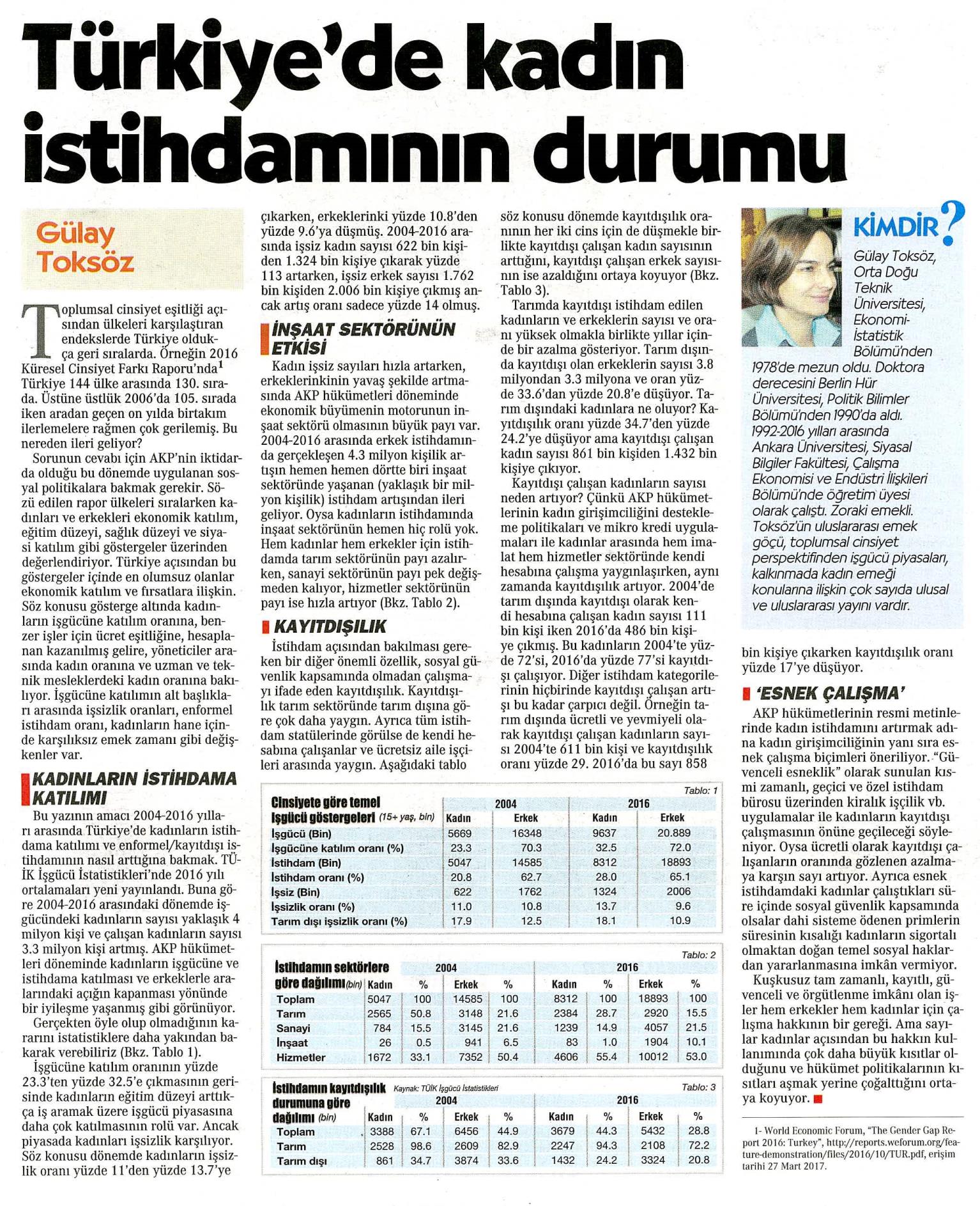 TÜRKİYE'DE KADIN İSTİHDAMININ DURUMU