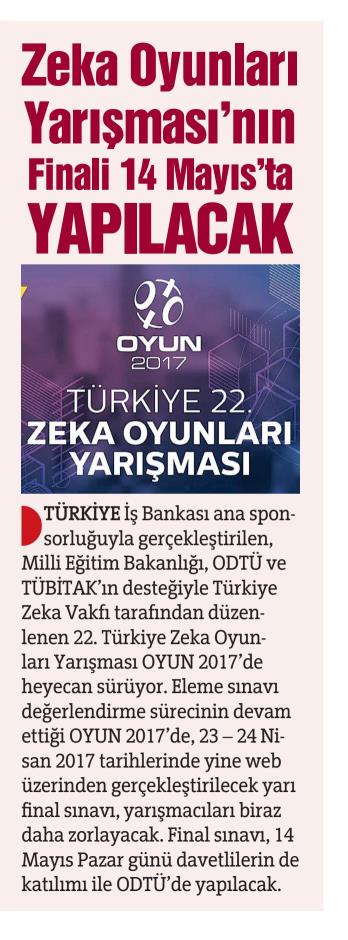 ZEKA OYUNLARI YARIŞMASI'NIN FİNALİ 14 MAYIS'TA YAPILACAK