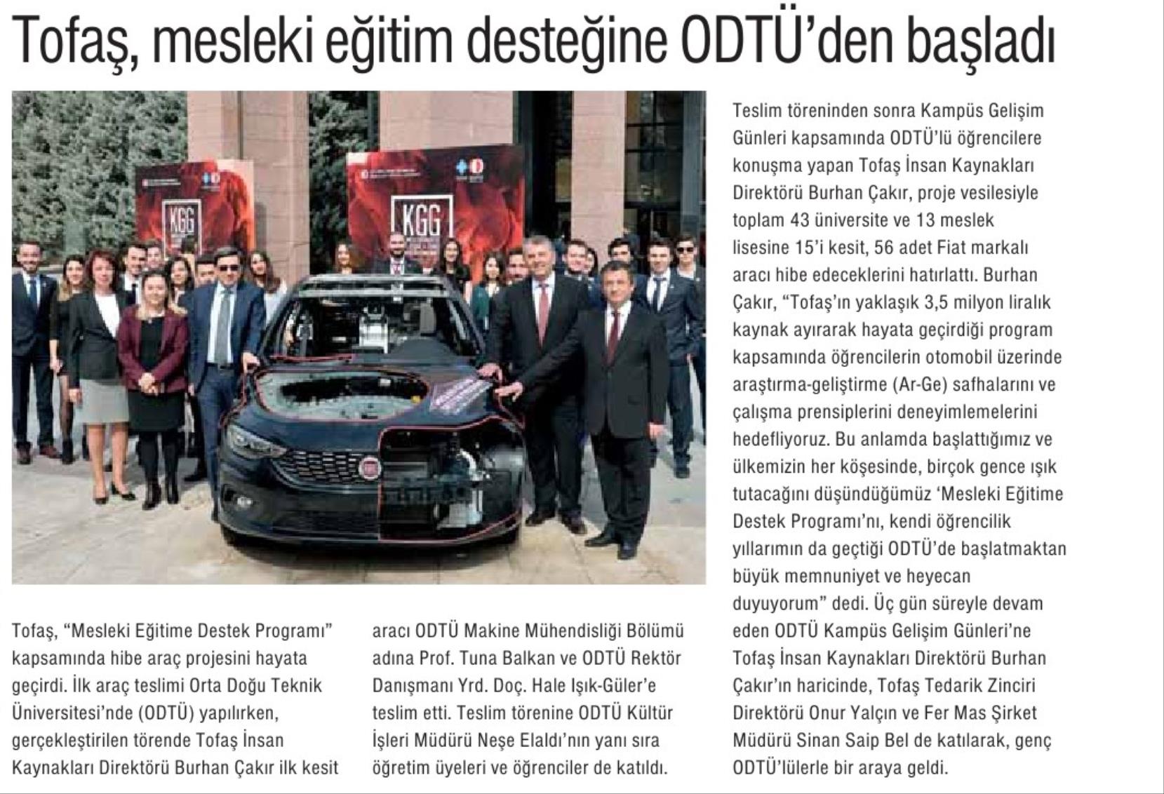 TOFAŞ, MESLEKİ EĞİTİM DESTEĞİNE ODTÜ'DEN BAŞLADI