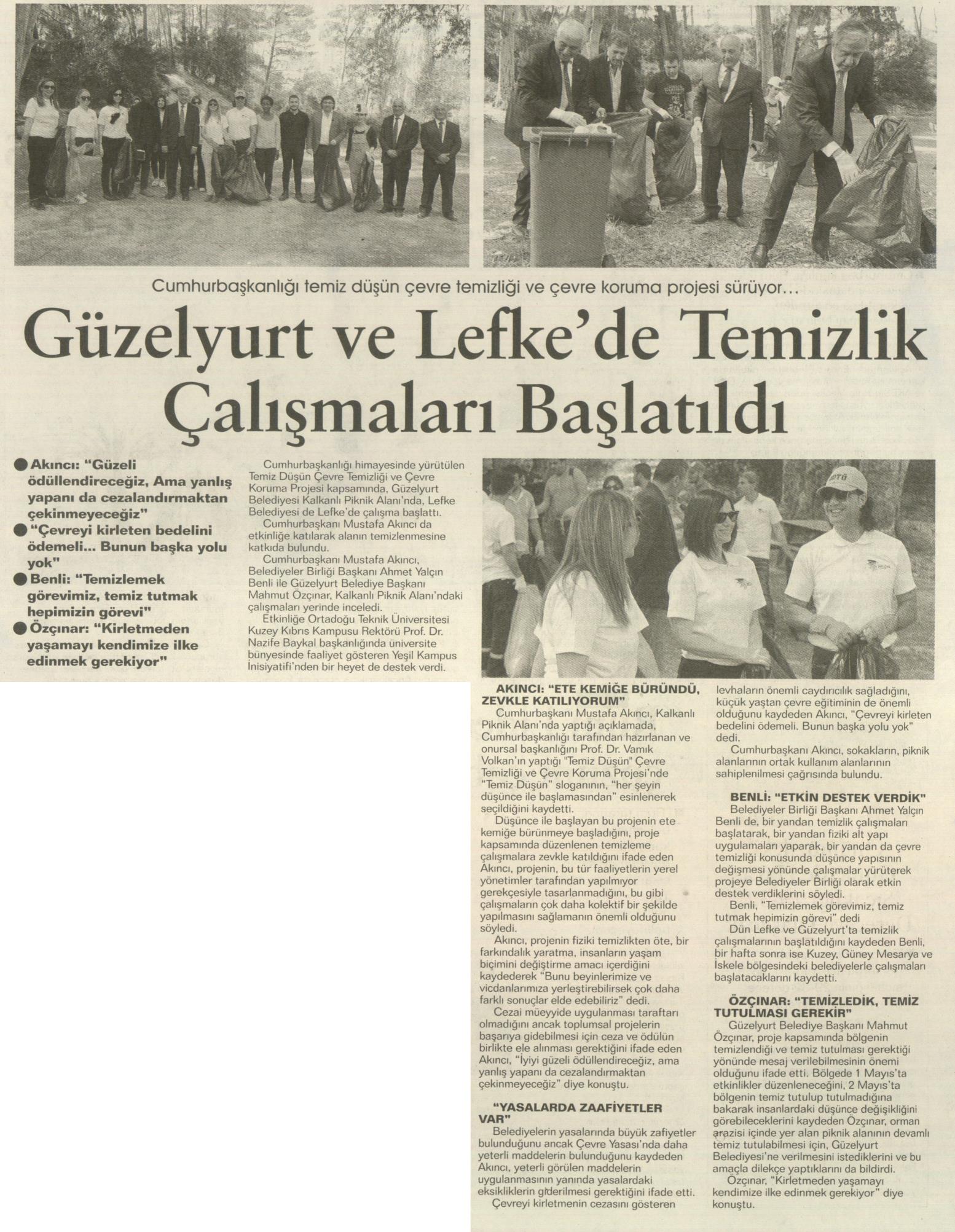 GÜZELYURT VE LEFKE'DE TEMİZLİK ÇALIŞMALARI BAŞLATILDI
