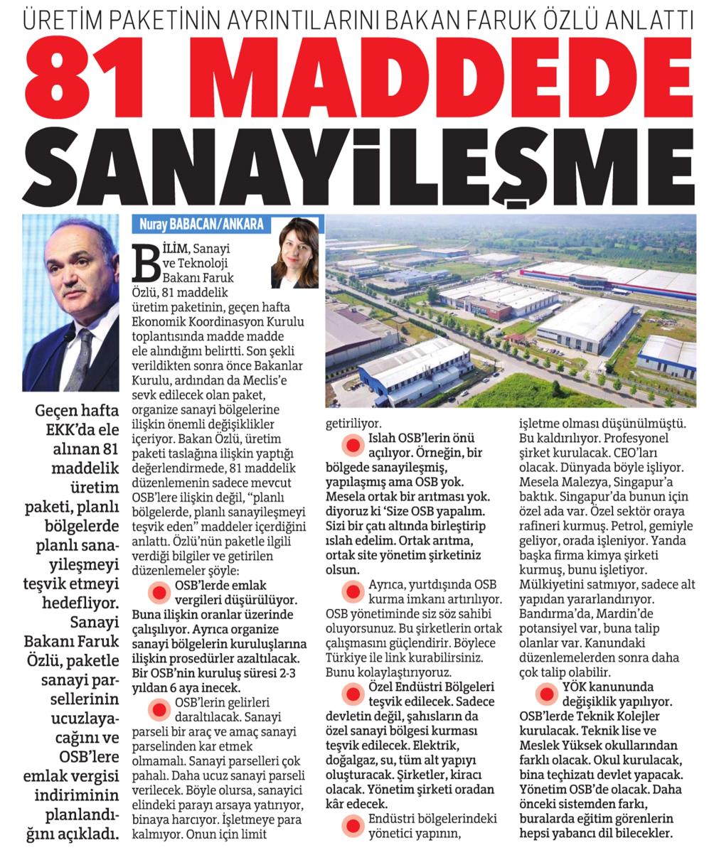 81 MADDEDE SANAYİLEŞME
