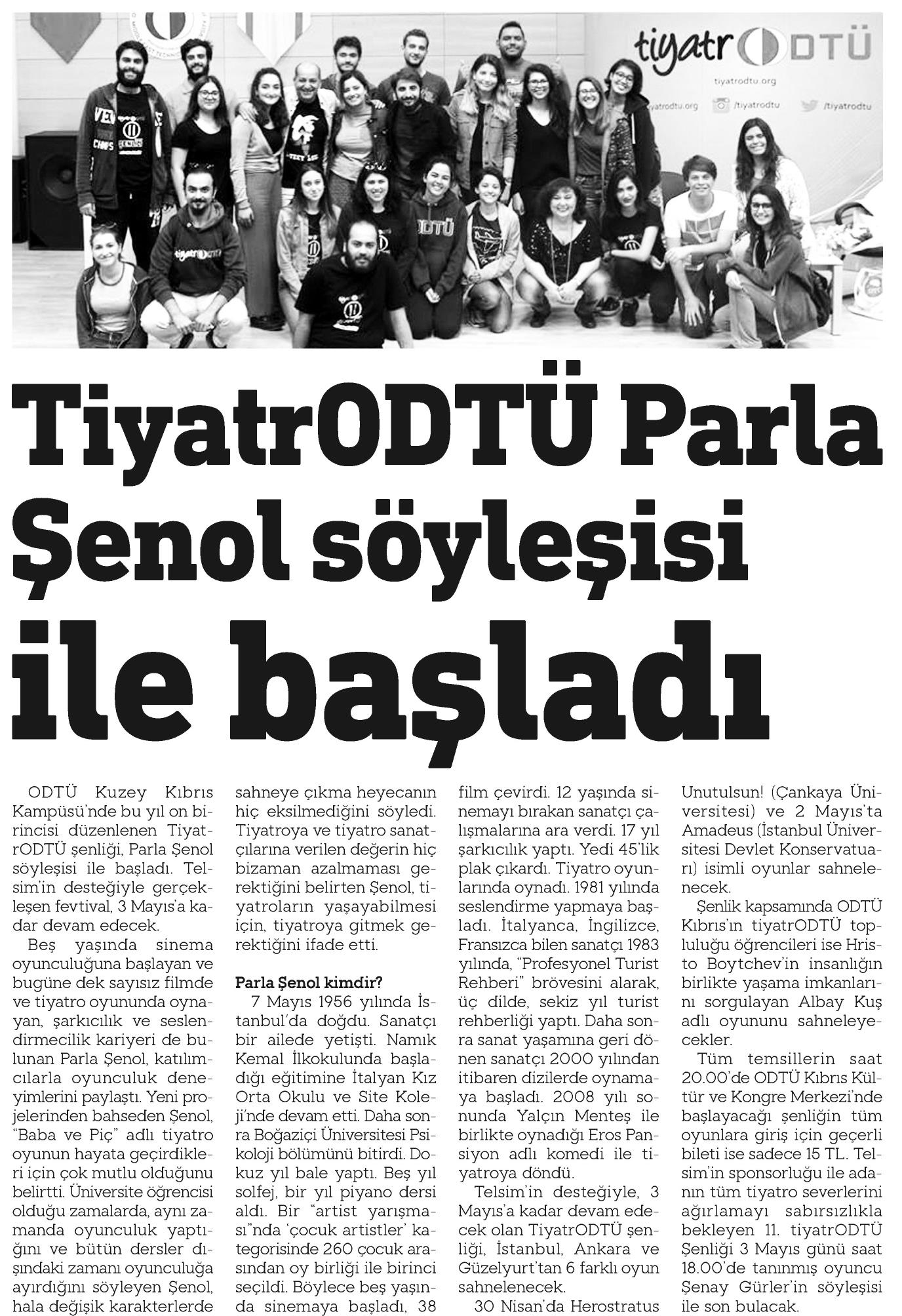 TİYATRODTÜ PARLA ŞENOL SÖYLEŞİSİ İLE BAŞLADI