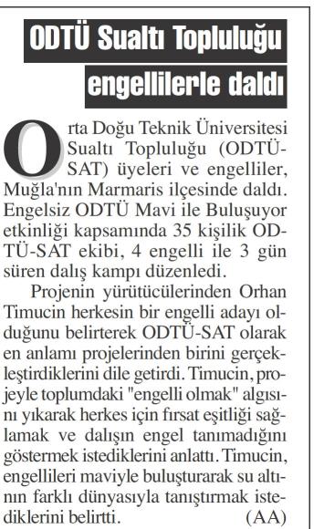 ODTÜ SUALTI TOPLULUĞU ENGELLİLERLE DALDI