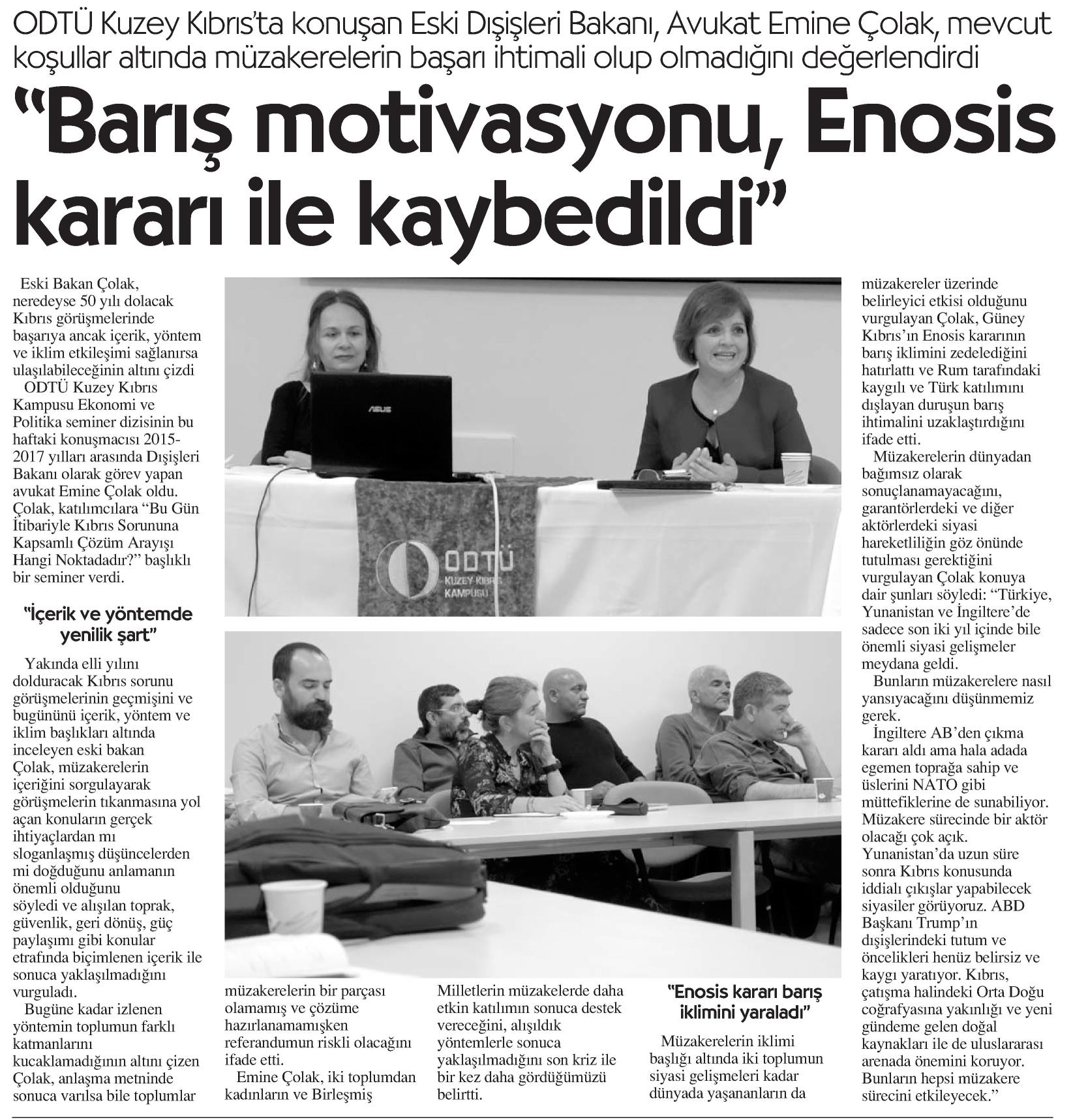 'BARIŞ MOTİVASYONU, ENOSİS KARARI İLE KAYBEDİLDİ'