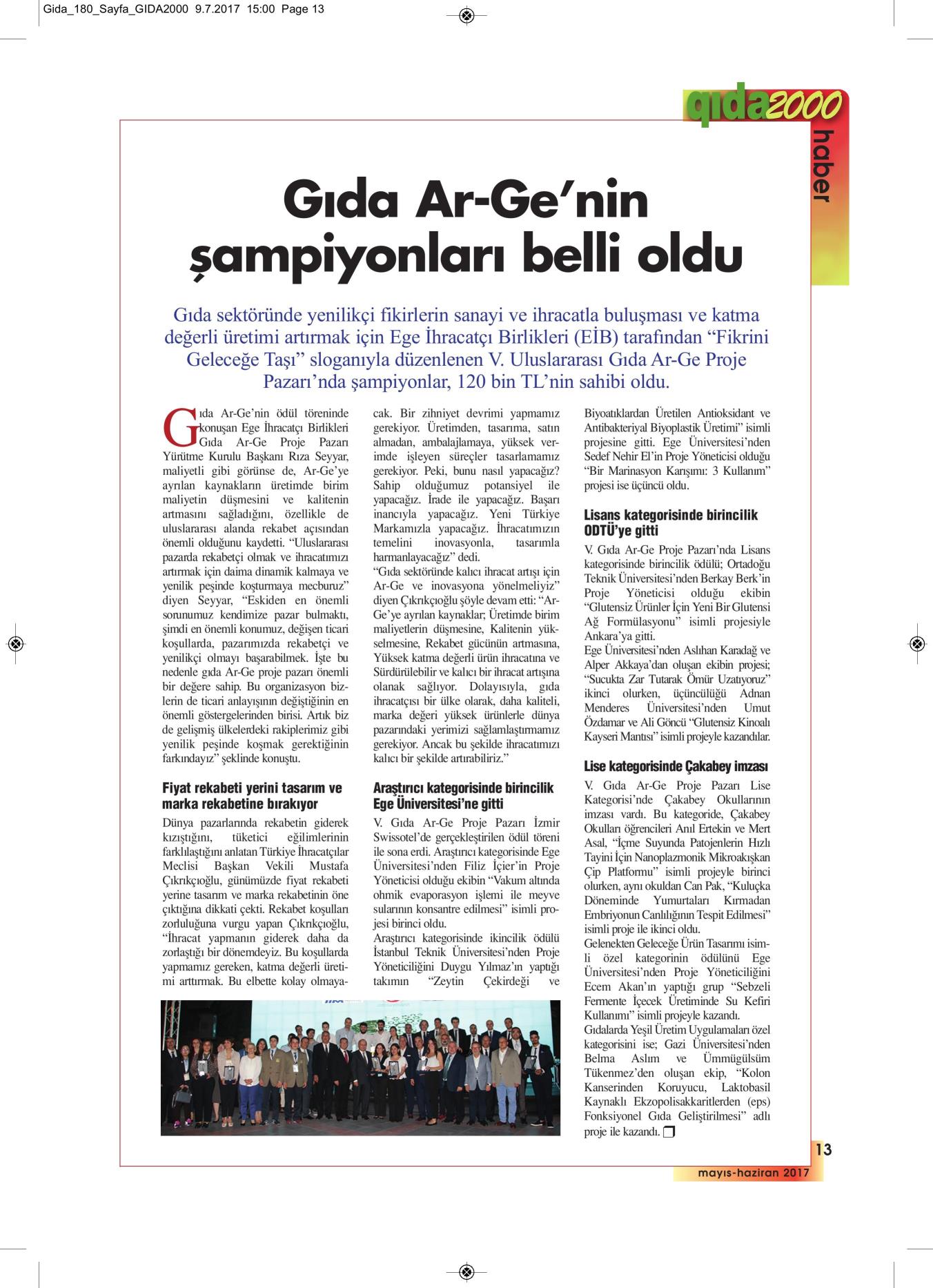 GIDA AR-GE'NİN ŞAMPİYONLARI BELLİ OLDU