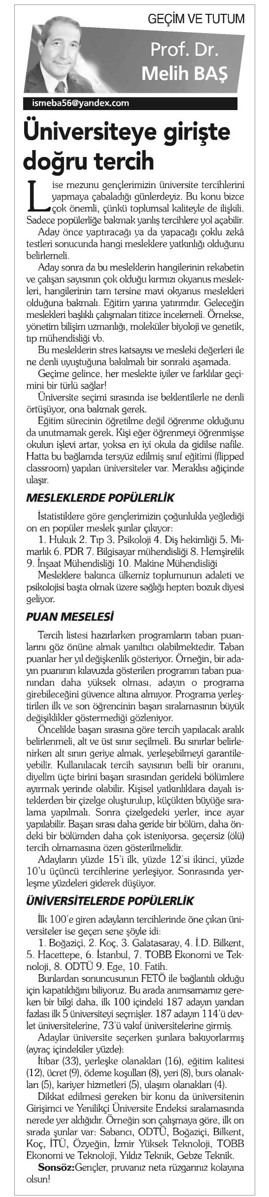 ÜNİVERSİTEYE GİRİŞTE DOĞRU TERCİH
