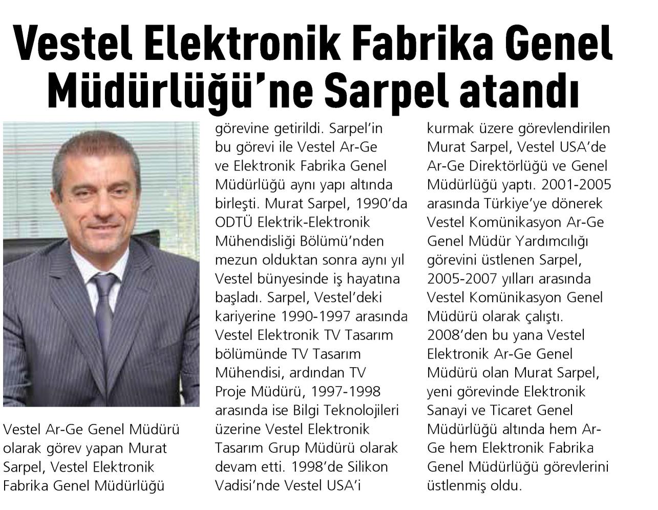 VESTEL ELEKTRONİK FABRİKA GENEL MÜDÜRLÜĞÜ'NE SARPEL ATANDI