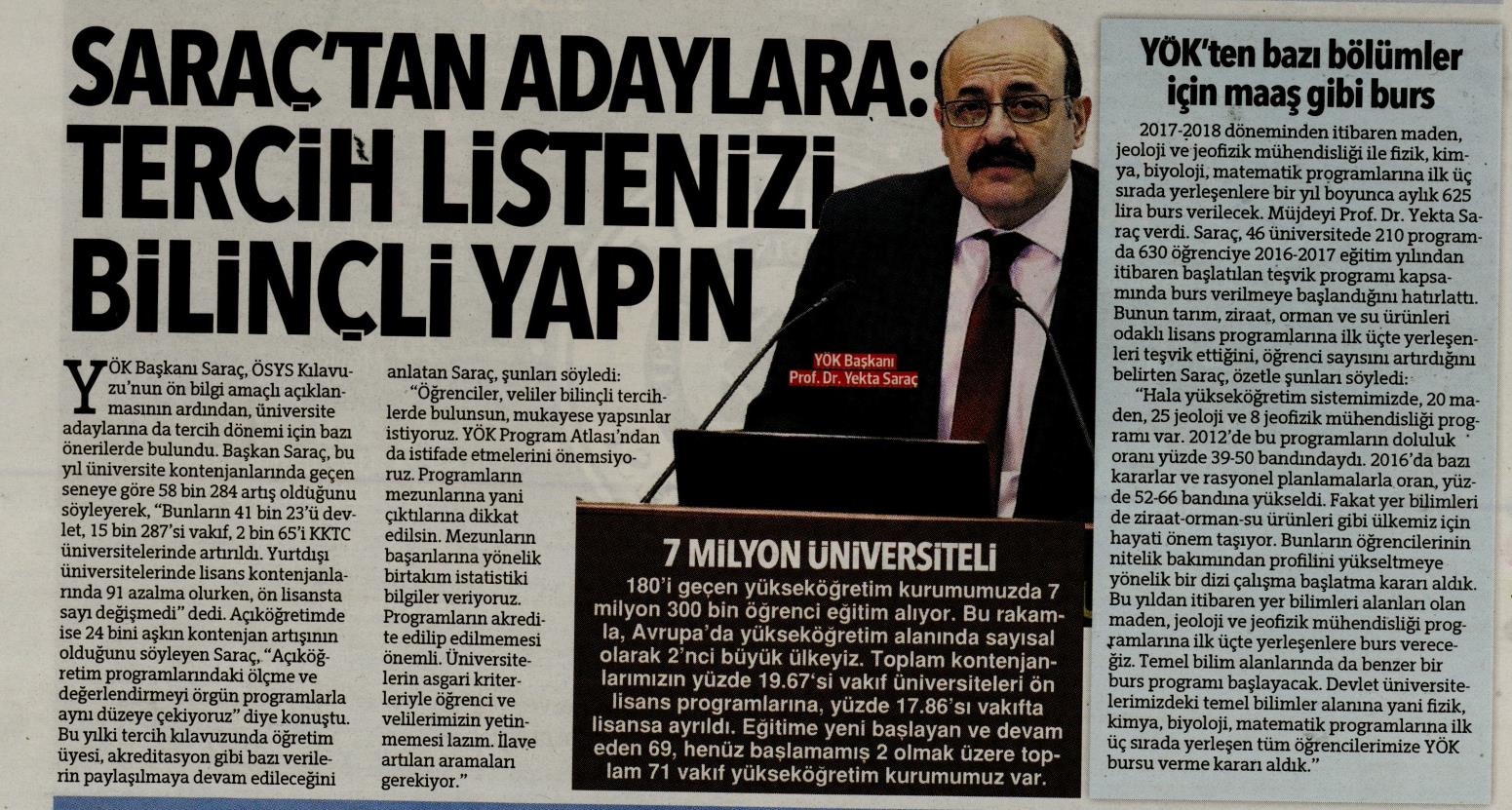 SARAÇ'TAN ADAYLARA: TERCİH LİSTENİZİ BİLİNÇLİ YAPIN