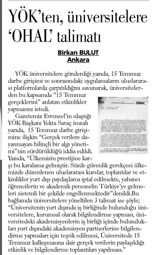 YÖK'TEN, ÜNİVERSİTELERE 'OHAL' TALİMATI