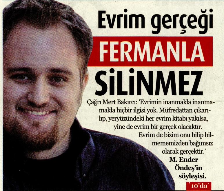 EVRİM GERÇEĞİ FERMANLA SİLİNMEZ