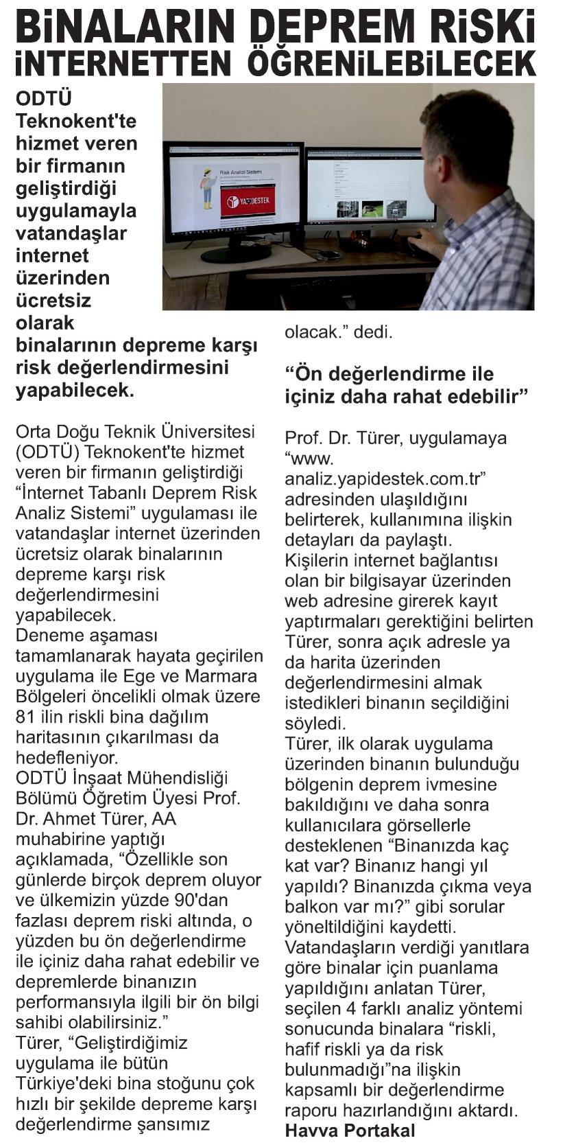 BİNALARIN DEPREM RİSKİ İNTERNETTEN ÖĞRENİLEBİLECEK
