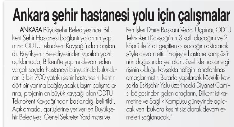 ANKARA ŞEHİR HASTANESİ YOLU İÇİN ÇALIŞMALAR