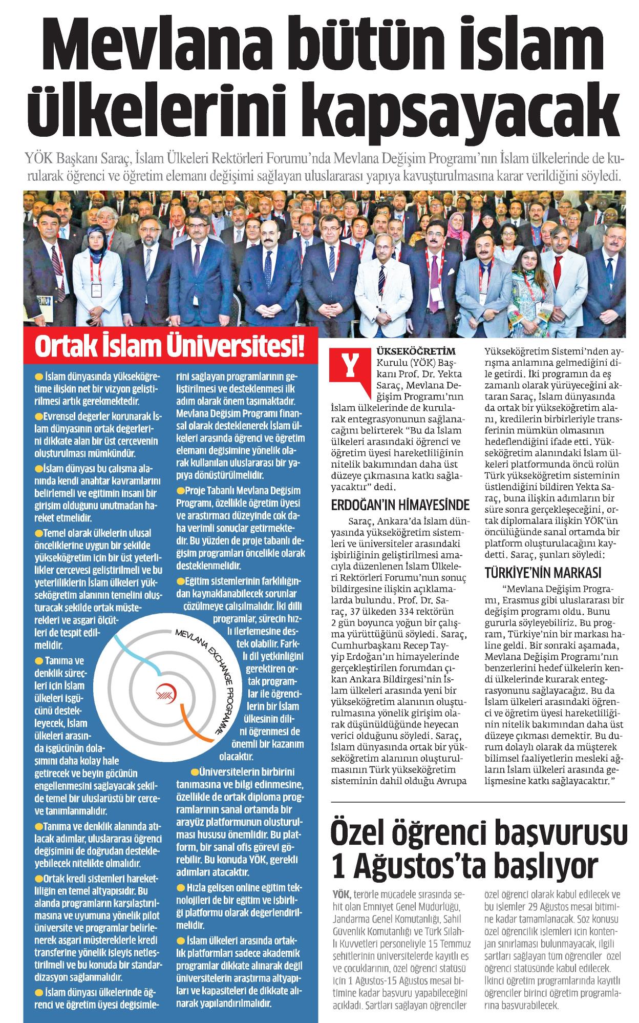 MEVLANA BÜTÜN İSLAM ÜLKELERİNİ KAPSAYACAK