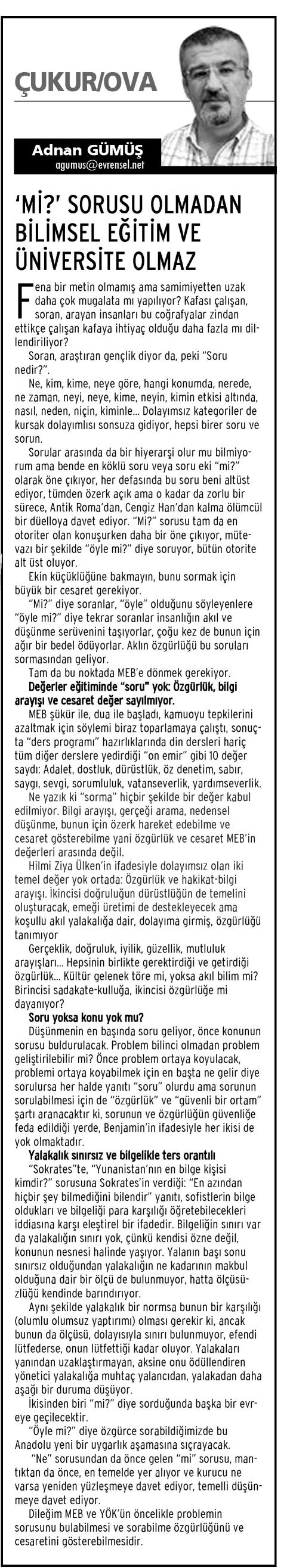 "Mİ?" SORUSU OLMADAN BİLİMSEL EĞİTİM VE ÜNİVERSİTE OLMAZ