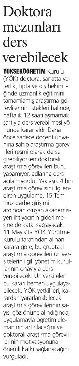 DOKTORA MEZUNLARI DERS VEREBİLECEK