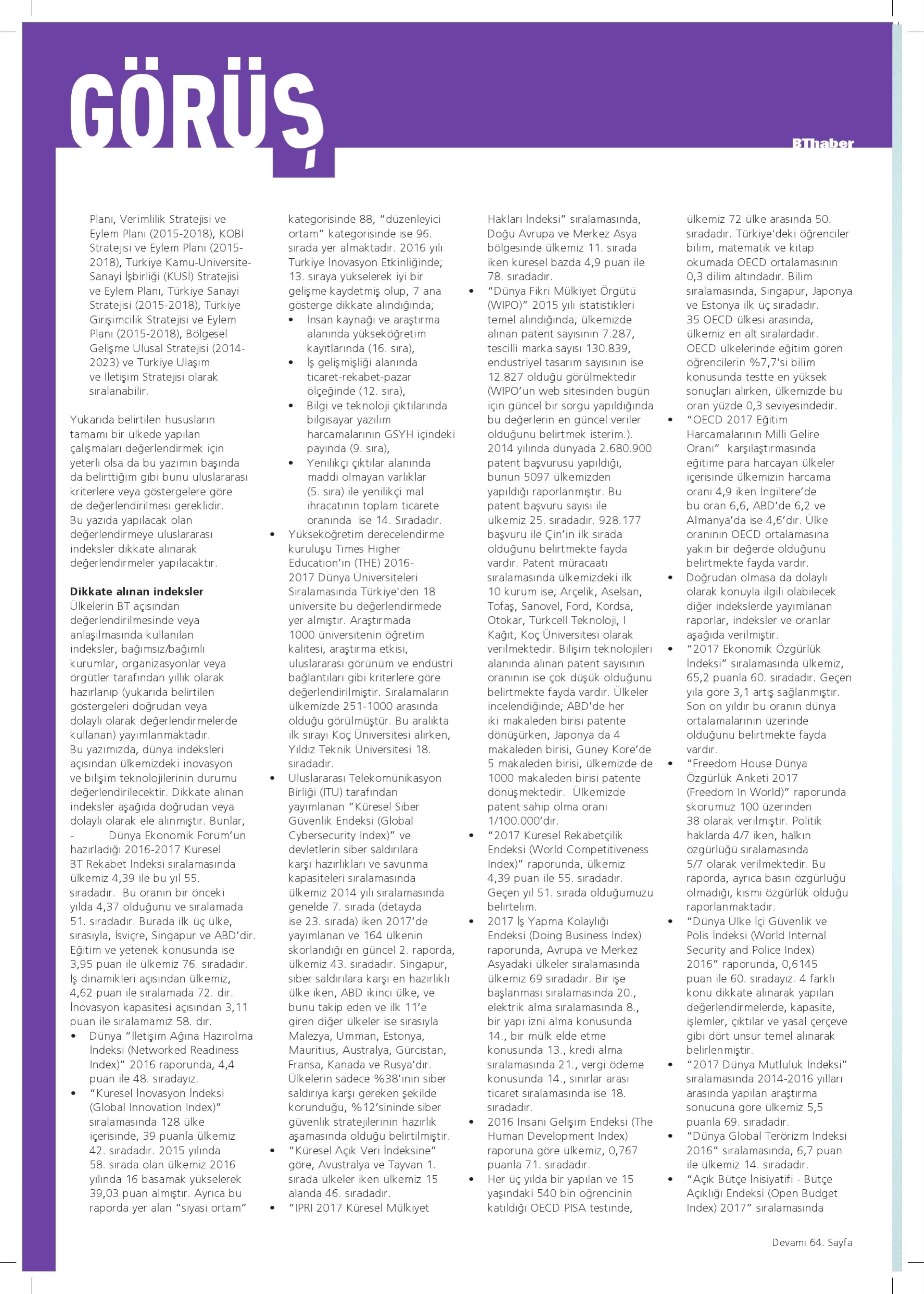 İNDEKSLERLE TÜRKİYE : BİLİŞİM TEKNOLOJİLERİ VE İNOVASYON [Devam - 1]