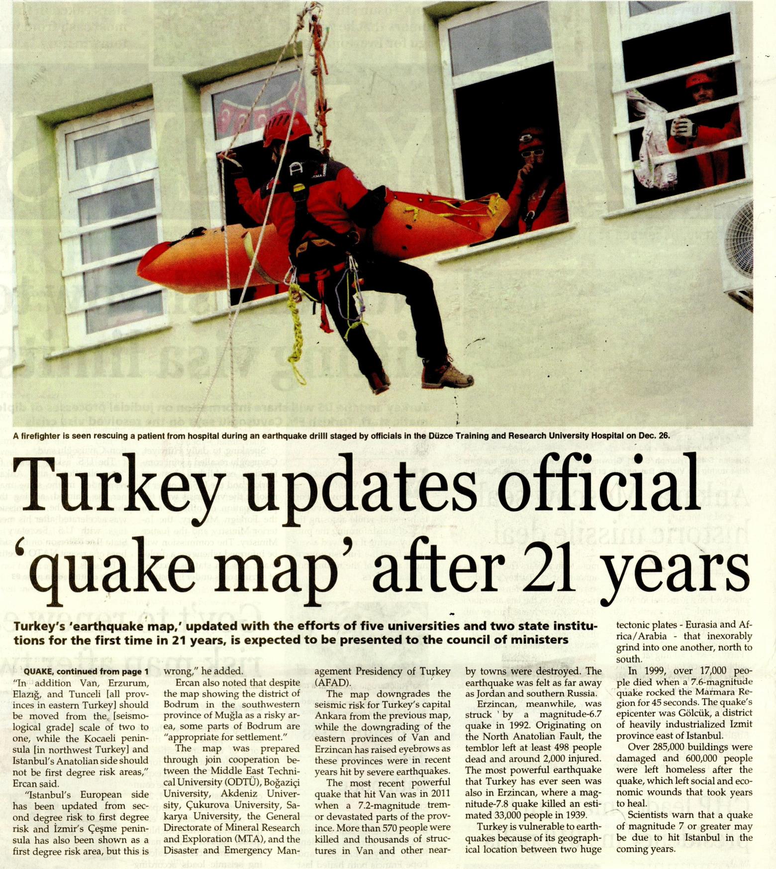 TURKEY UPDATES OFFICIAL 'QUAKE MAP' AFTER 21 YEARS